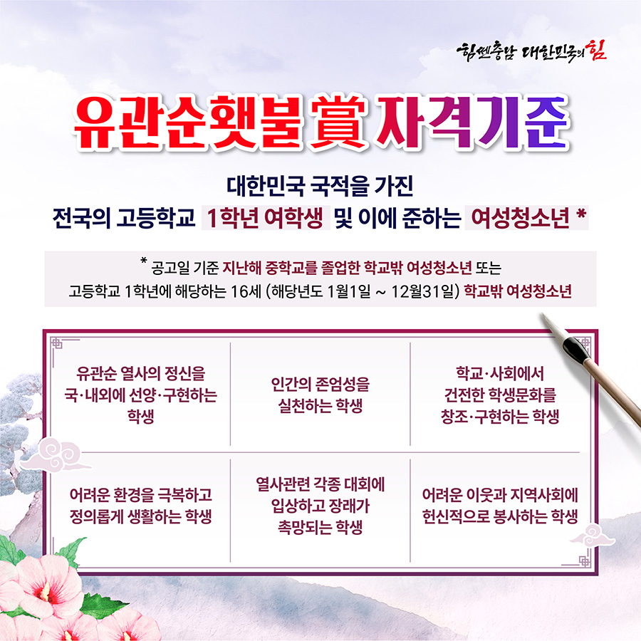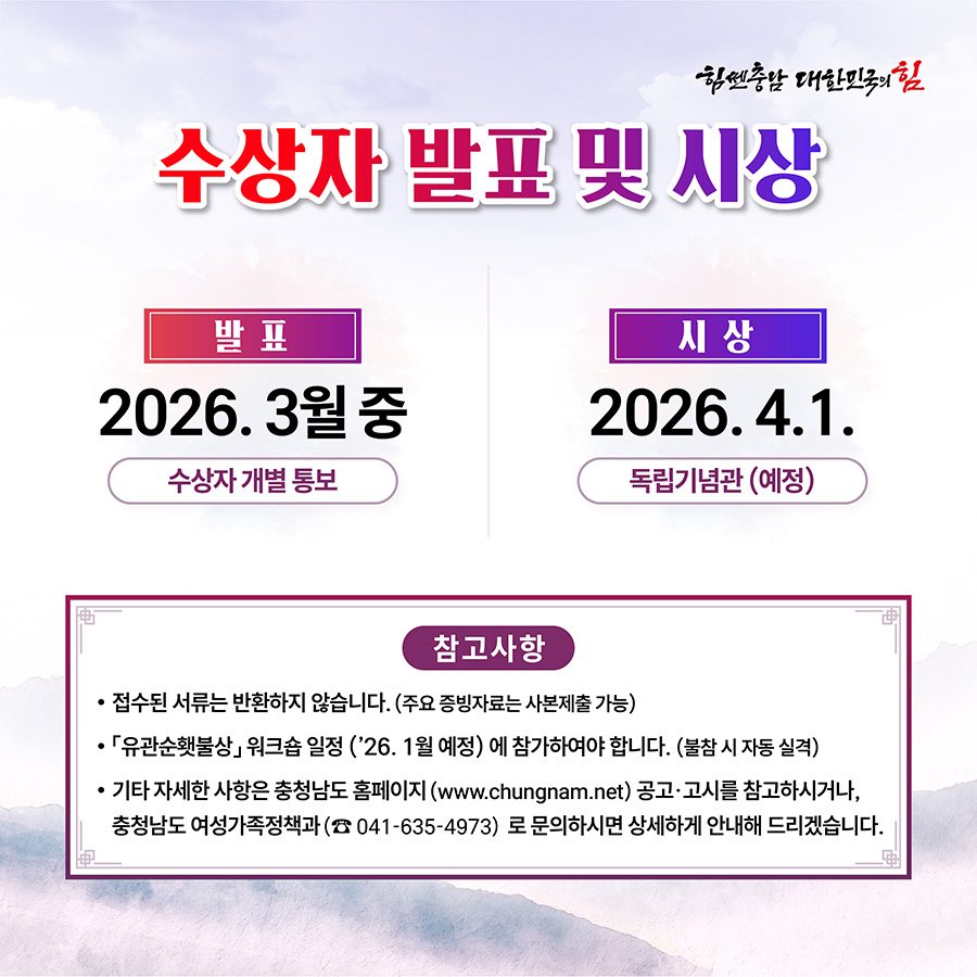 2026년 제25회 유관순상·유관순횃불상 후보자 모집
