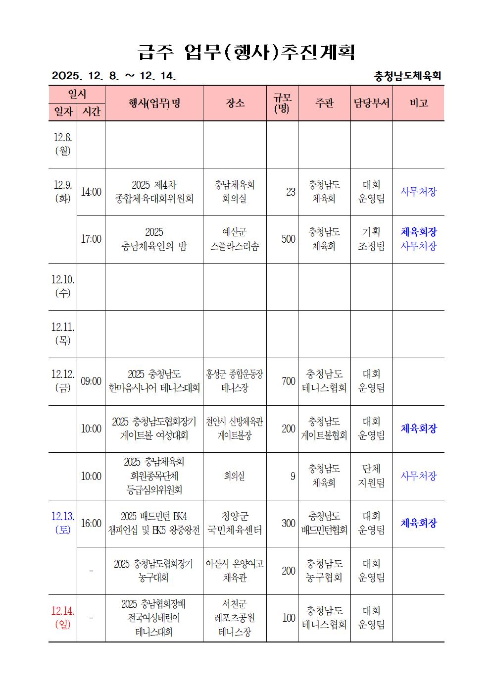 2025. 12. 08.(월) ~ 12. 14.(일)