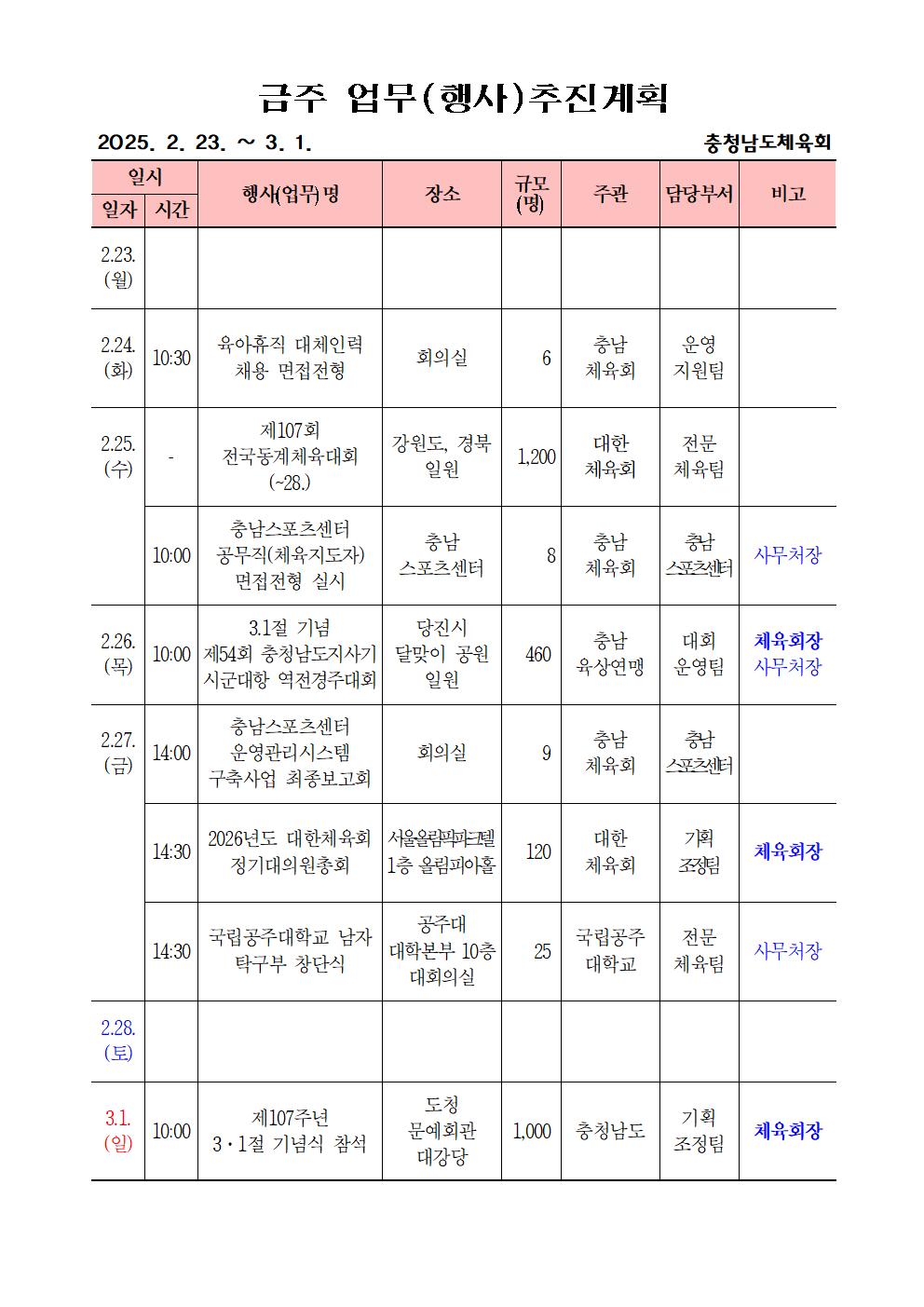 2026. 2. 23.(월) ~ 3. 1.(일)
